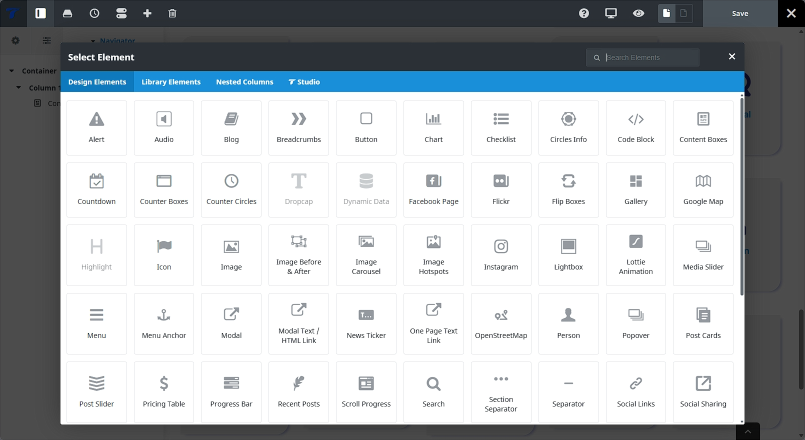 Use this page to browse the full element library, understand what each element is meant for, and jump into the related documentation when you need full settings, usage notes, or implementation details.